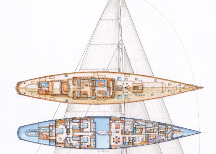 Inspired by the success of the ketch Adele built in 2006, s/y ANNE was tailored to offer enhanced performance and aesthetics with fewer sails and rigging, ideal for streamlined operations with a smaller crew. The design prioritizes spaciousness and comfort, featuring multiple cockpit areas