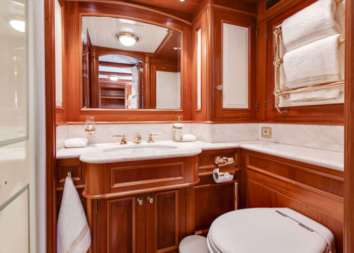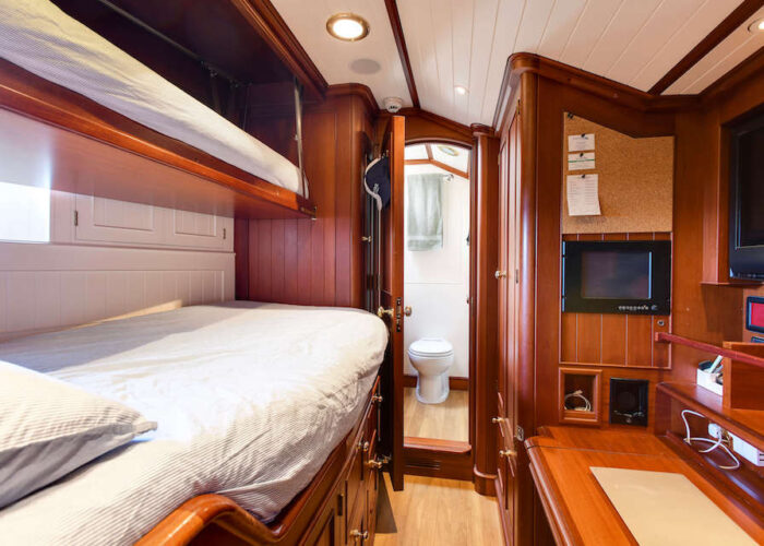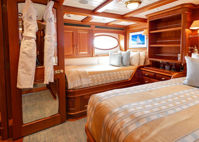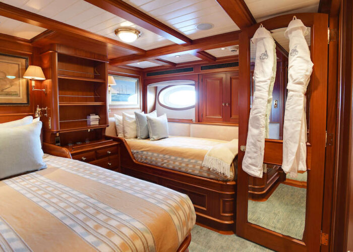 The guest accommodations consist of four cabins situated forward of the Master suite, ensuring privacy and comfort to both the owners and their 8 guests maximum.