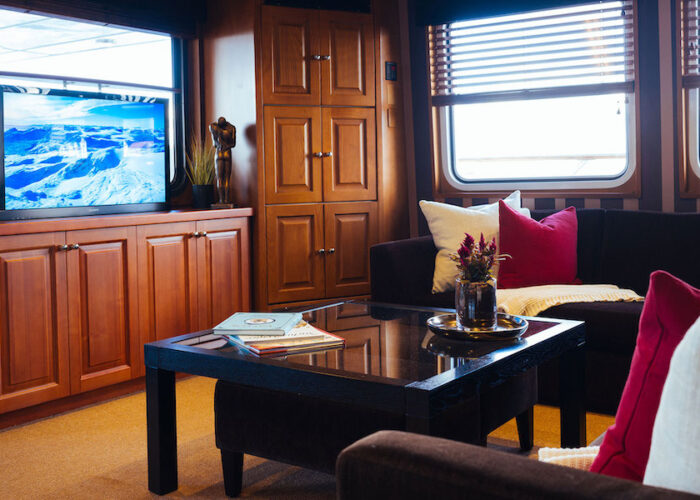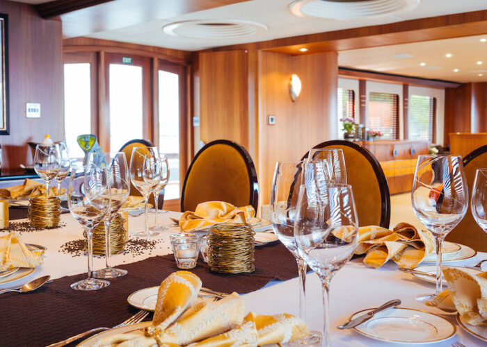 converted to a twin) and two twin staterooms. All tastefully decorated. The main deck saloon and dining