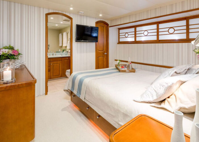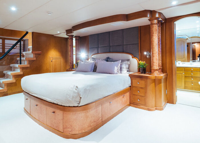 passage or at rest. The full beam master stateroom with two en suites is entered separately from the four