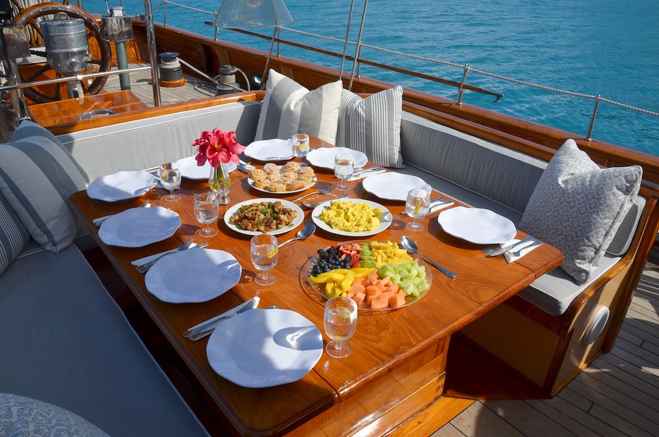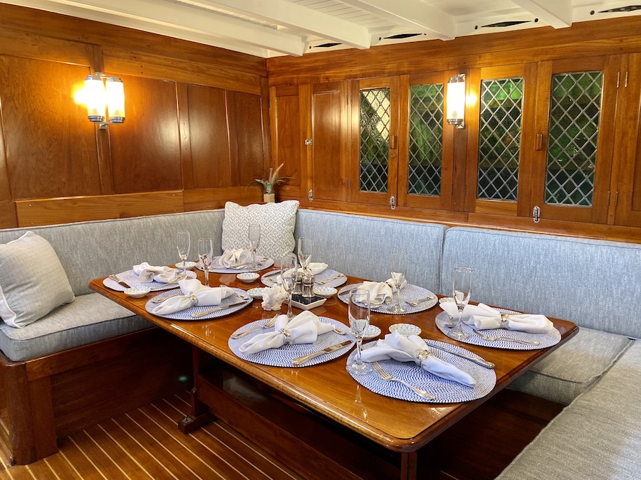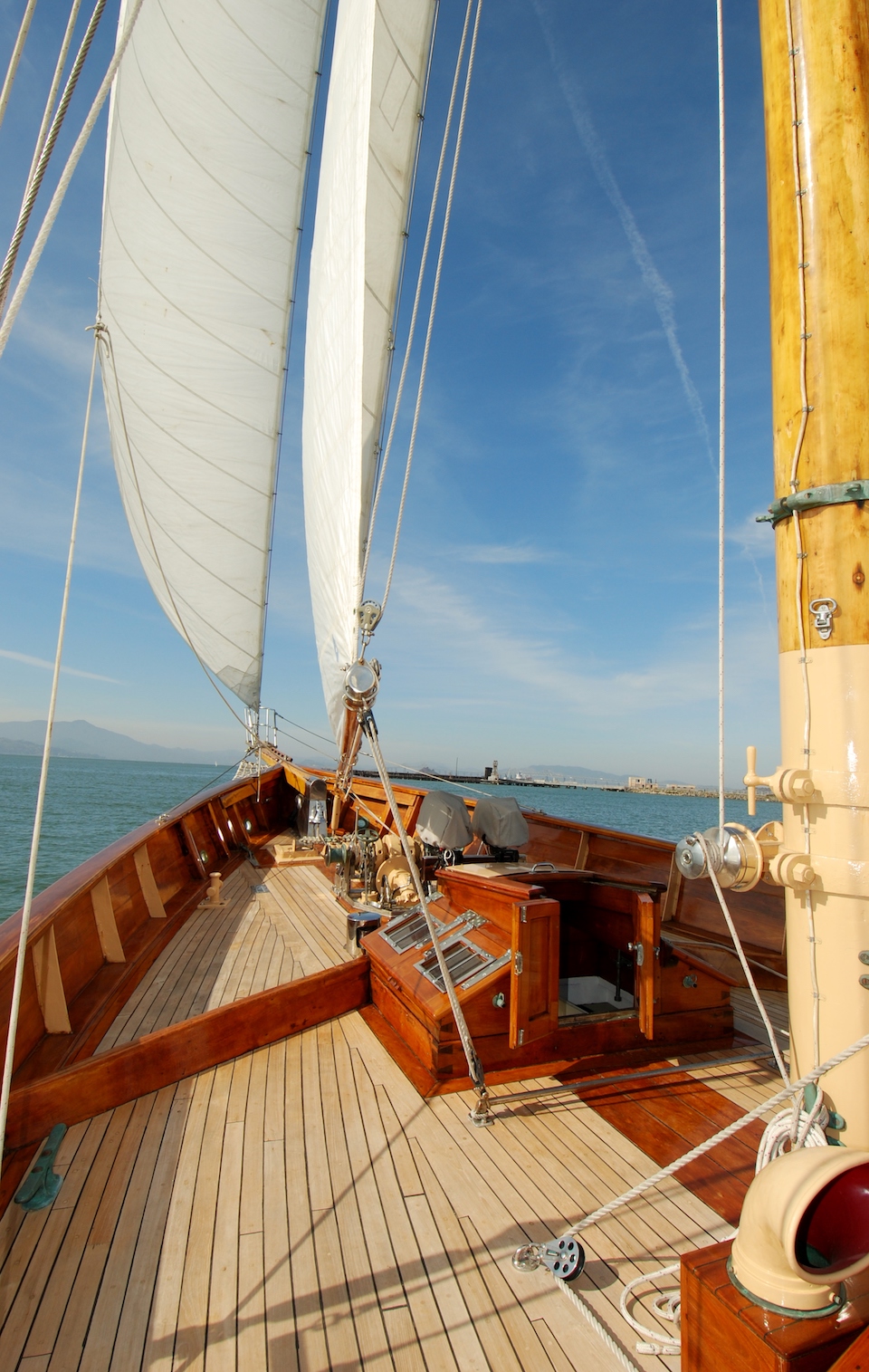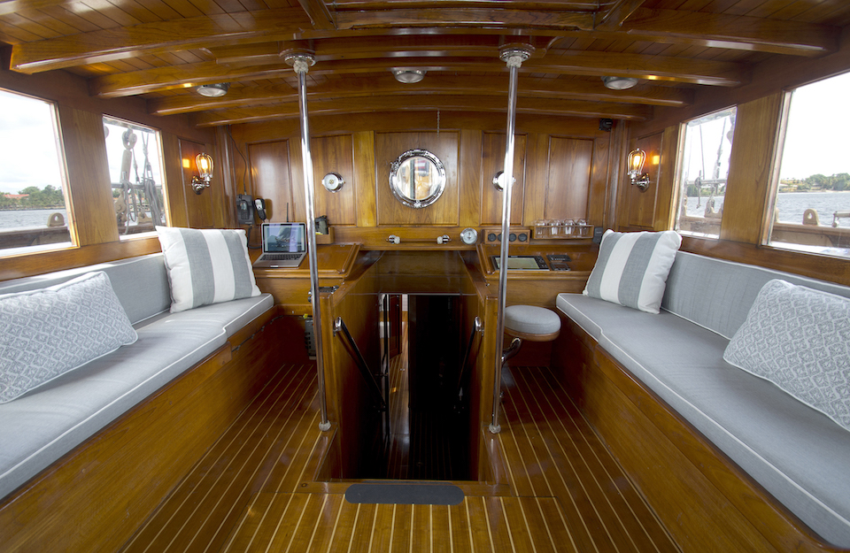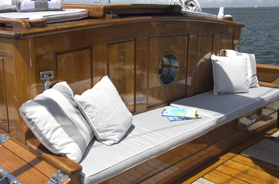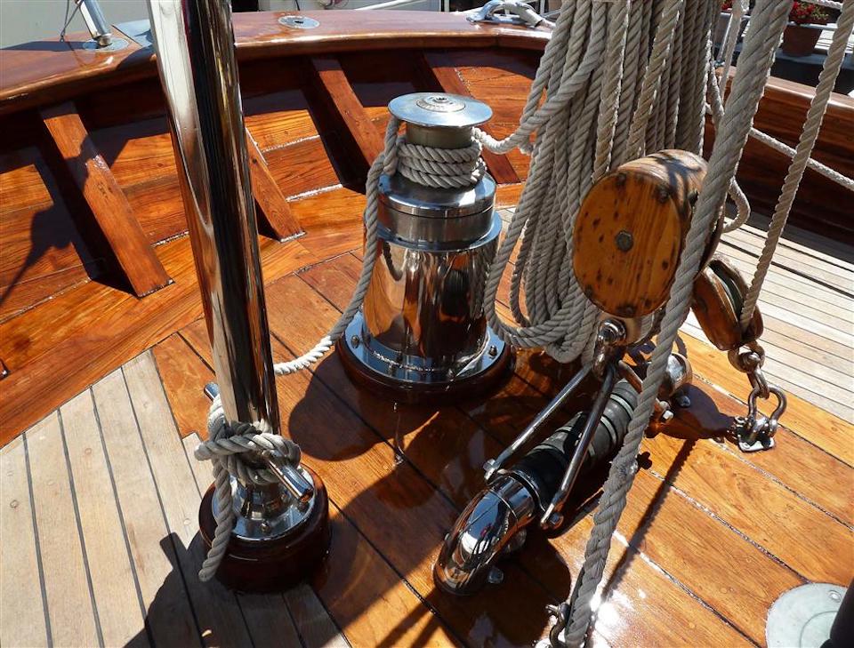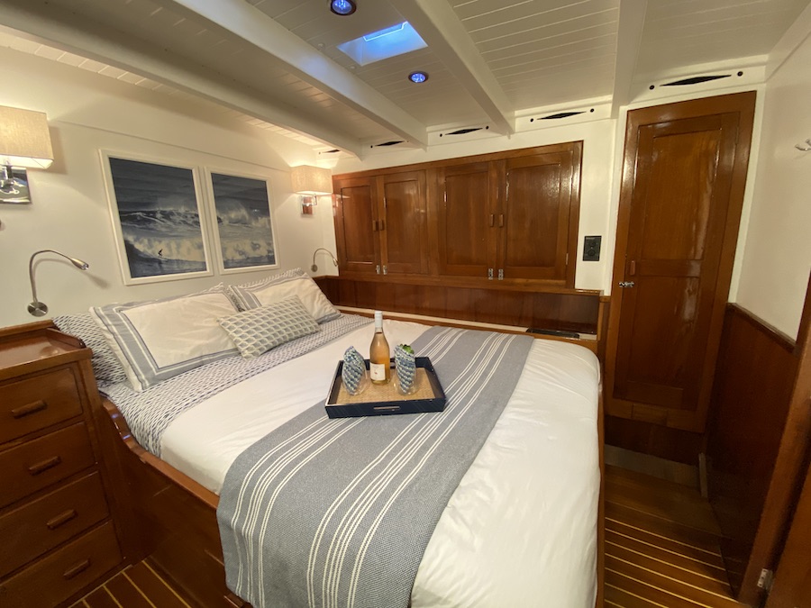 Between 1990 and 2010, EROS underwent a complete 20-year rebuild at Stone Boatyard in Alameda, California. Every plank, system, and fitting was either painstakingly restored or replaced to modern standards, while her teak decks, rig, and interior were rebuilt with longevity in mind. More recently, her current owners have continued a rigorous program of upgrades at respected yards, including Boothbay Harbor Shipyard (2023, 2025) and Fairhaven Shipyard (2018). Recent works include new Garmin navigation, rebuilt 25 kW Northern Lights generator, doubled water-maker capacity, extensive hull and rig servicing, topsides refinished with the Epifanes system, rudder and transom rebuilds, and full deck varnish and detailing.