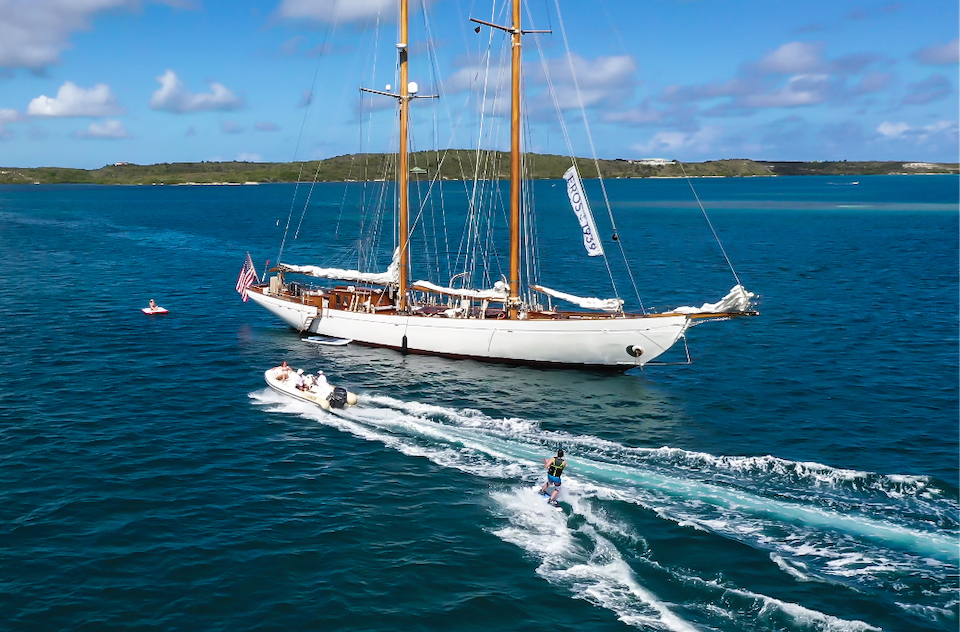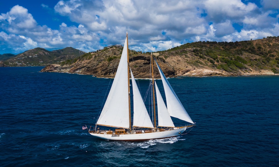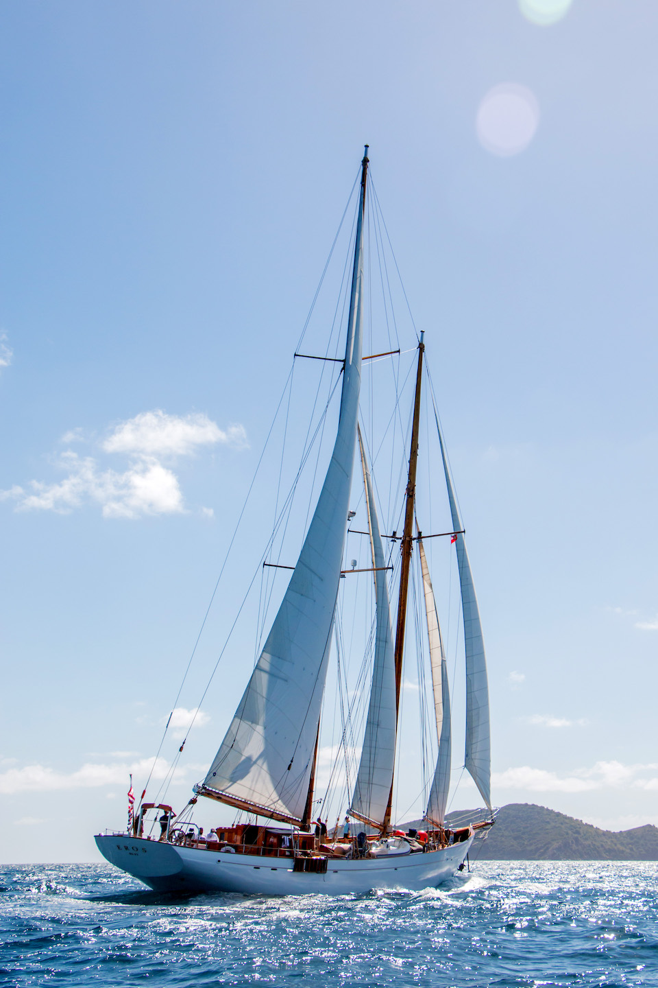 Launched in 1939 in England for an American businessman, EROS was commissioned as a large, safe, and easily handled world-cruising schooner. After the war, she was acquired by Greek shipping magnate Stavros Niarchos, who kept her for three decades and welcomed a glittering guest list including King Juan Carlos of Spain (who honeymooned aboard in 1962) and composer Cole Porter. Since then, she has had only three further owners, each of whom has ensured her continued preservation and use as both a family yacht and a successful charter vessel.