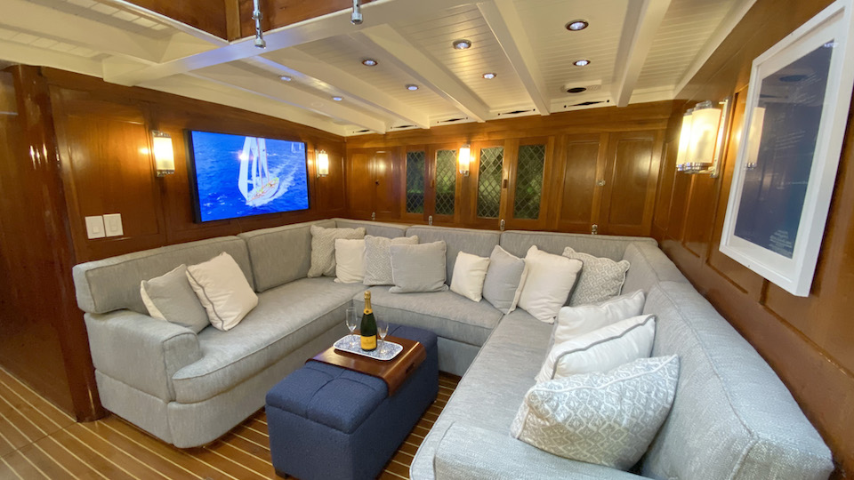 The updated saloon features a new couch that can be made up to accommodate two guests.