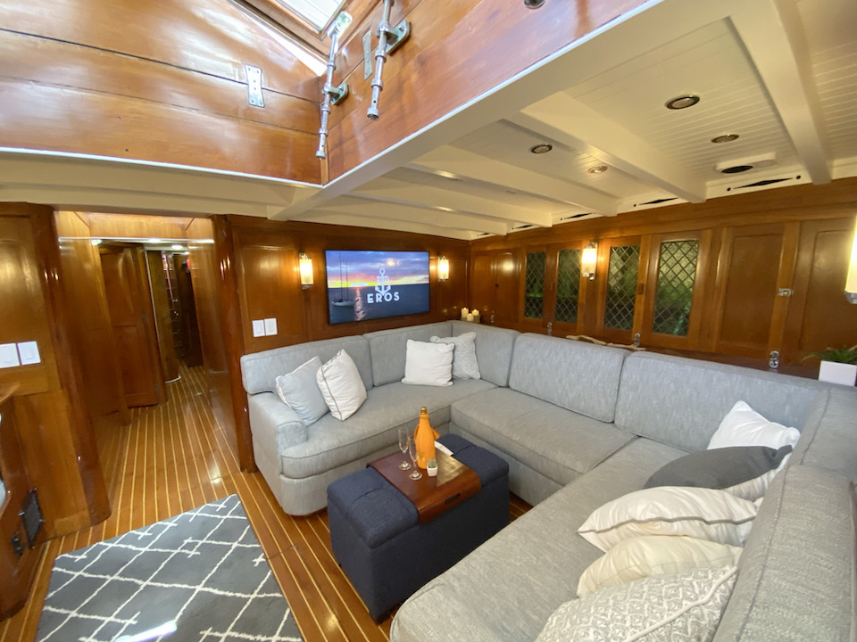 She combines the character of a true classic – Burmese teak planking, bronze fittings, sweeping schooner lines – with the reliability of a fully modernized yacht. A capable passagemaker and proven charter performer, she has cruised extensively in the Caribbean, Mediterranean, and New England, crossing oceans with ease. With her rich history, comprehensive restoration, and ongoing professional maintenance, EROS represents an exceptional opportunity: a yacht of pedigree, beauty, and proven earning potential, equally suited to private family cruising or continued charter success.